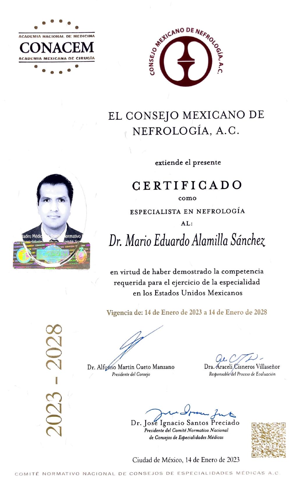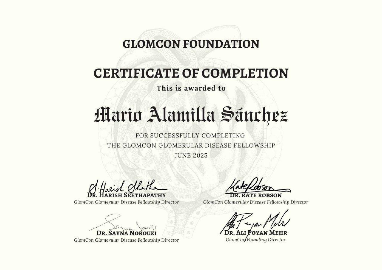 4.- Kidney Pathology Certificate Program, certificado otorgado por la asociación Glomerular Disease Study & Trial Consortium (GlomCon) de los Estados Unidos (2022-2023).