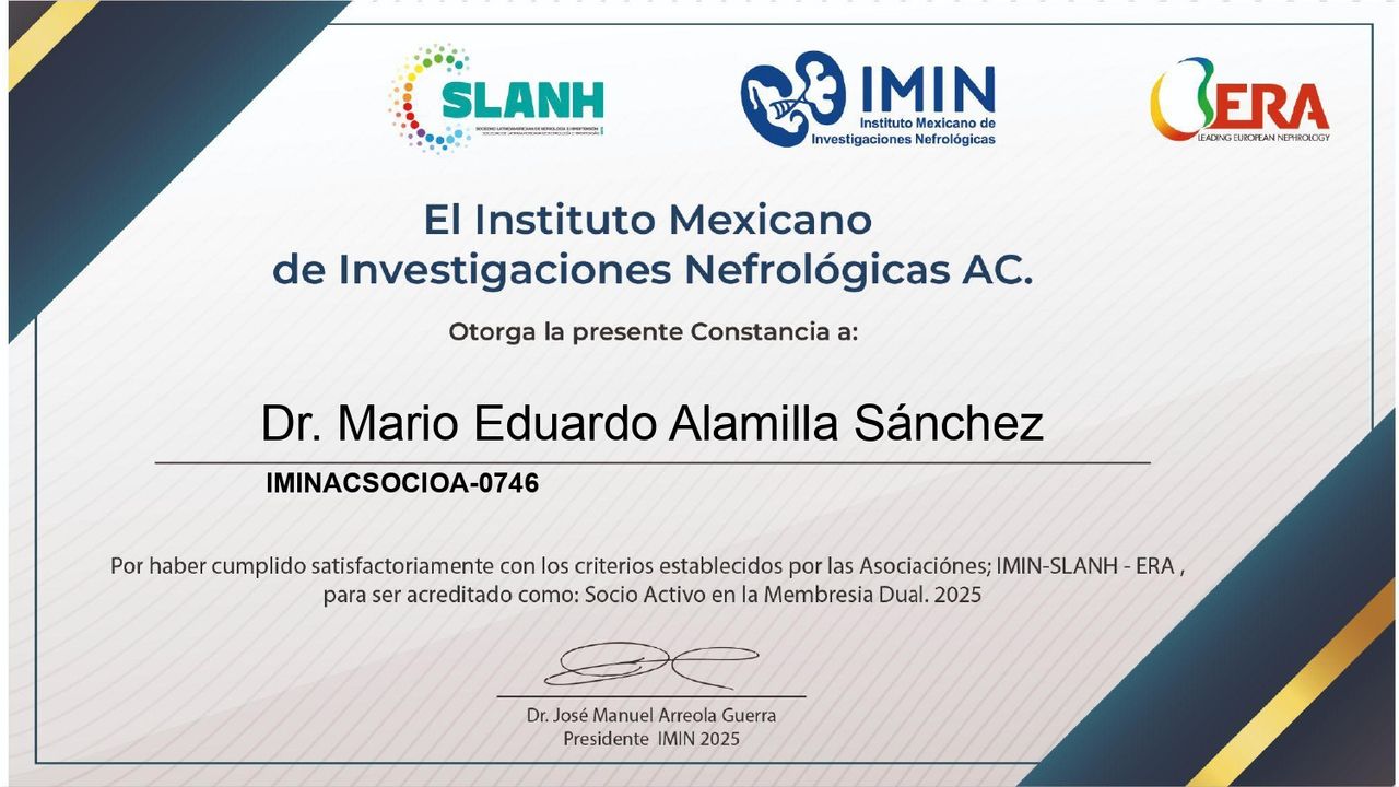 2.- Máster en Patología Renal, certificado por la Clínica Universitaria de la Universidad Rey Juan Carlos, España (2023-2024).
